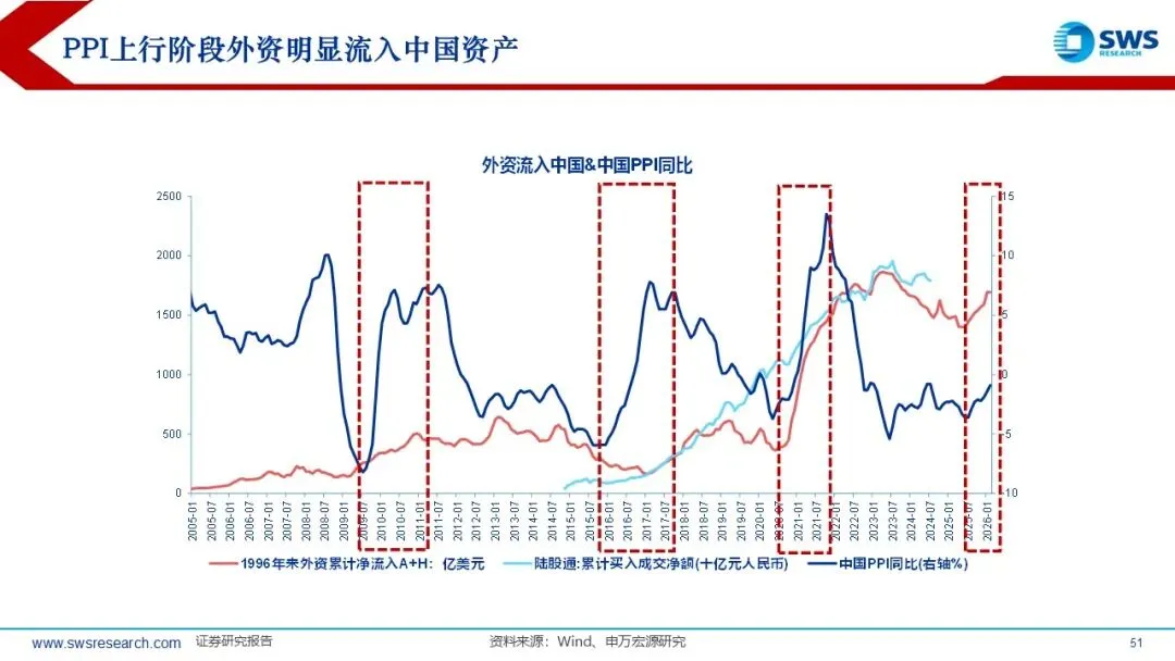 1)人民币升值预期和PPI上行均会促使外资明显流入中国资产;2)2026年内3年和5年期存款预计超40万亿规模到期,“资产荒”背景下A股和港股的股息率仍有相对性价比;3)2026Q1股票型ETF被动基金流出8000多亿元,当前公募主动权益明显低配顺周期和消费行业。