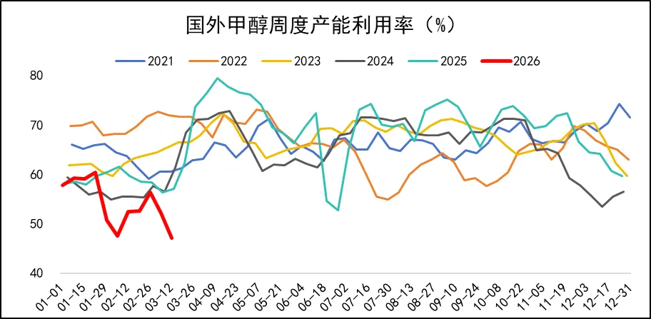 自伊朗发生地缘冲突以来,甲醇的价格整体涨幅较大,甲醇期货2605合约价格自2月27日低点2177元/吨,快速上涨至3月13日收盘价的2805元/吨。