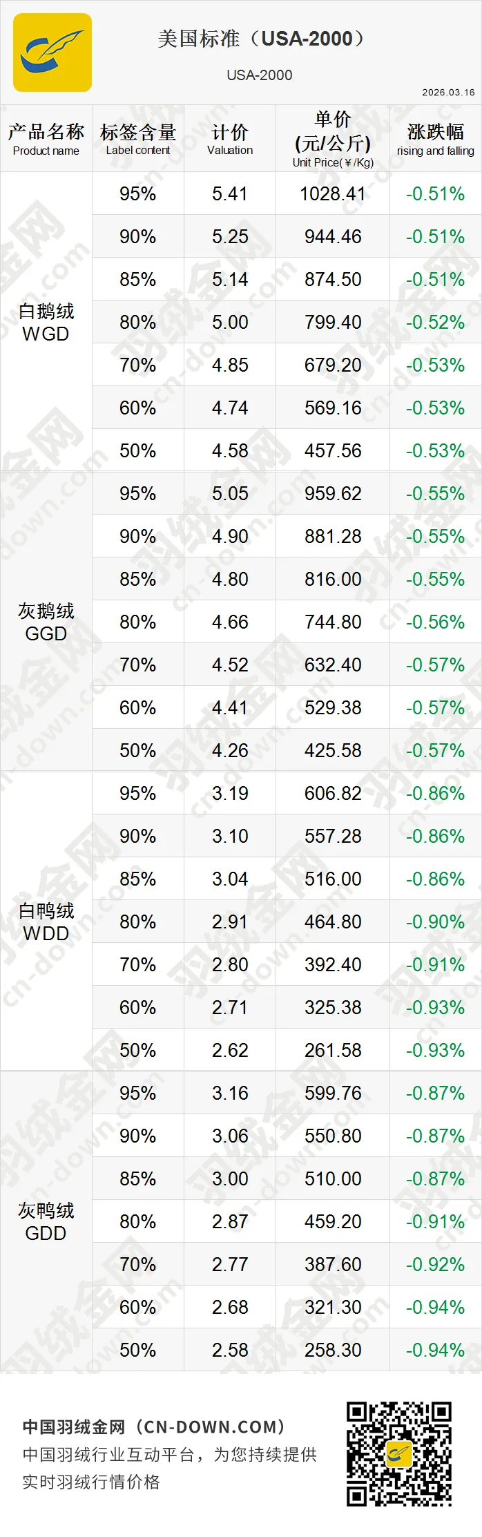 金网报价不含二手绒、胶水绒、粉尘绒和鸡丝绒的价格。