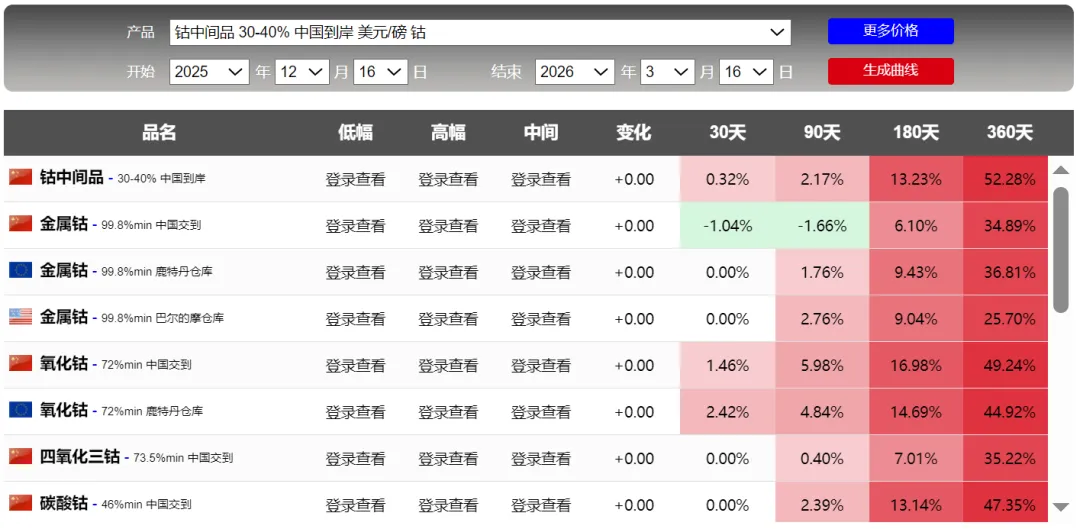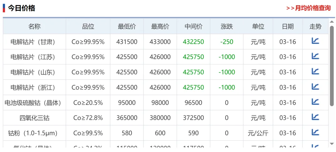 钨行情钨精矿下调,废钨市场高位出货大幅下跌!钴行情金属钴小幅下行!