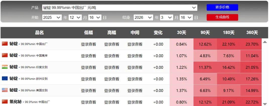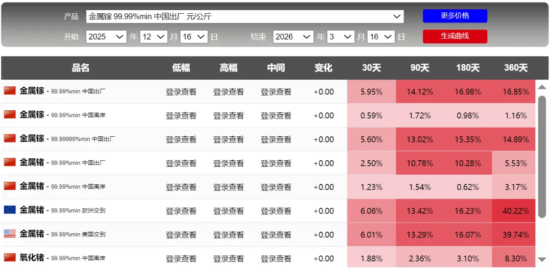 美国、日本和欧洲标准行情(2026.3.16) Standard Price in the US,Japan and Europe