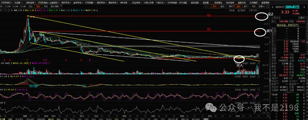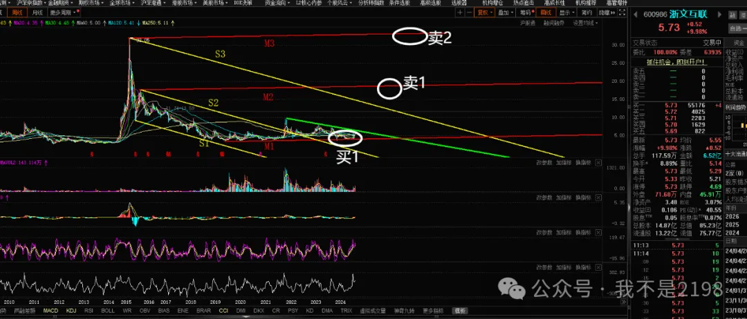 其实ZWHL的空间预期也还是不错的,股价4块多出头是底部,也是建仓点,M2的中期目标在18块多,倍数还行吧,M3的总目标在33左右,大家算算看,这些是不是都符合我们对牛市最基本的预期空间?当然,别忘了M1永远要作为止损位存在,不允许跌破。