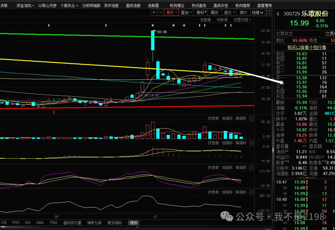 比如乐哥歌股份,我们期待它的理由是消费刺激政策,这些利好很可能要在下月初开完会才看到,所以,现在正式筹划布局的阶段,为了不踏空,那就是两手准备,首先,站上5日线要进场,突破白色下压线要进场,但是诱多的成本也存在,因为指标还没金叉,往下砸一砸是为了骗散户出局的,所以,不要期待一次就能解决问题,要懂得随机应变,短线操作还是要注意的,如果股价已经打到半年线15元附近了,或者日线MACD指标快要金叉或者日线CCI大于0了,那就请不要轻易再卖出了,因为很可能快速反转会出现,别踏空也是一门重要功课的。