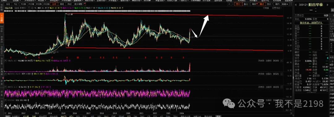 对于阳谷华泰来说,因为停牌要重组了,所以,大概率就直接放弃了,开盘也不能去追了,除非重组搁浅了,那就等股价回踩颈线位补掉9块多的缺口了,重新再找机会也不迟,但往上目前也就是红色上轨的目标,还不敢看的太高。