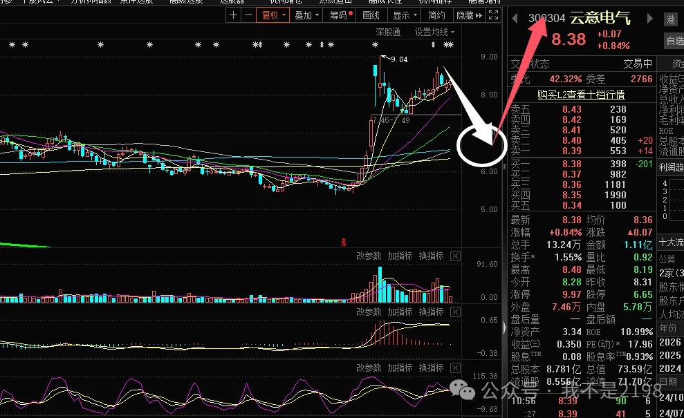 像是云意电气这种的,乖离率这么大,想直接拉起来,有点难度的,所以,绝对不要追高,要么回撤半年线和60日线附近再买,要么就死等或者放弃,总之就是不着急,什么时候下来什么时候再说,这种开口太大的个股,指标还是高位死叉的,休想把我们骗进去了,但一旦下来,就是机会,别犹豫。
