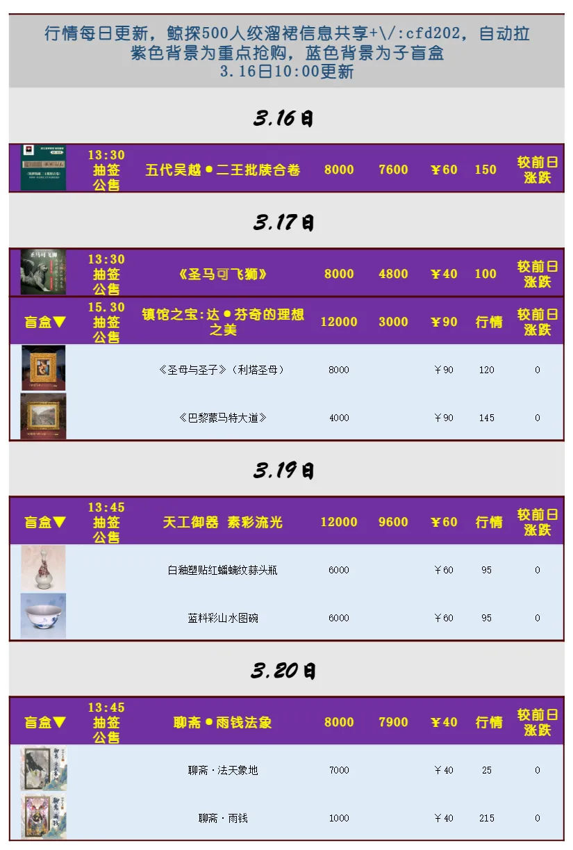 鲸探今日90肉,3.16-3.20日行情价&发售日历只发有肉项目