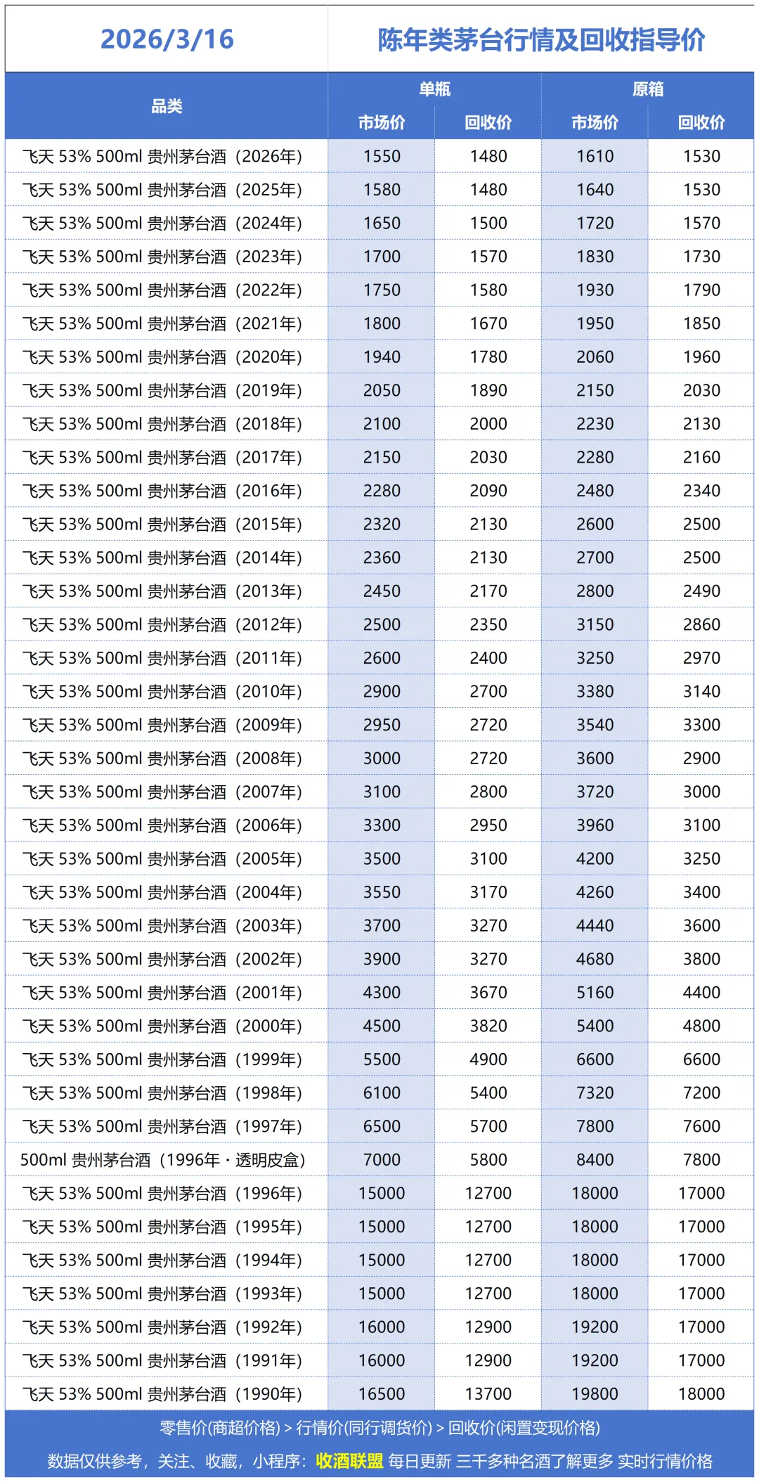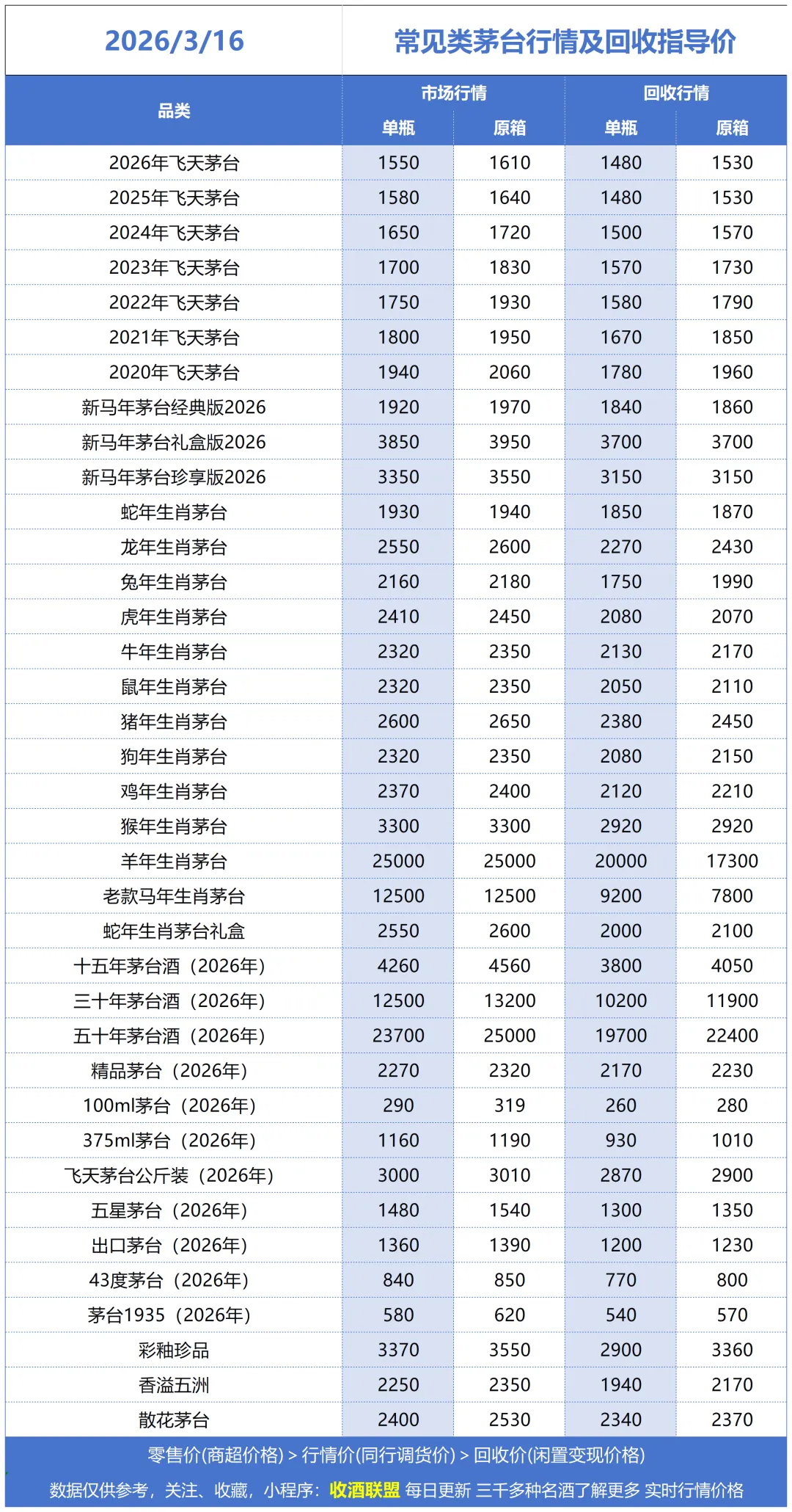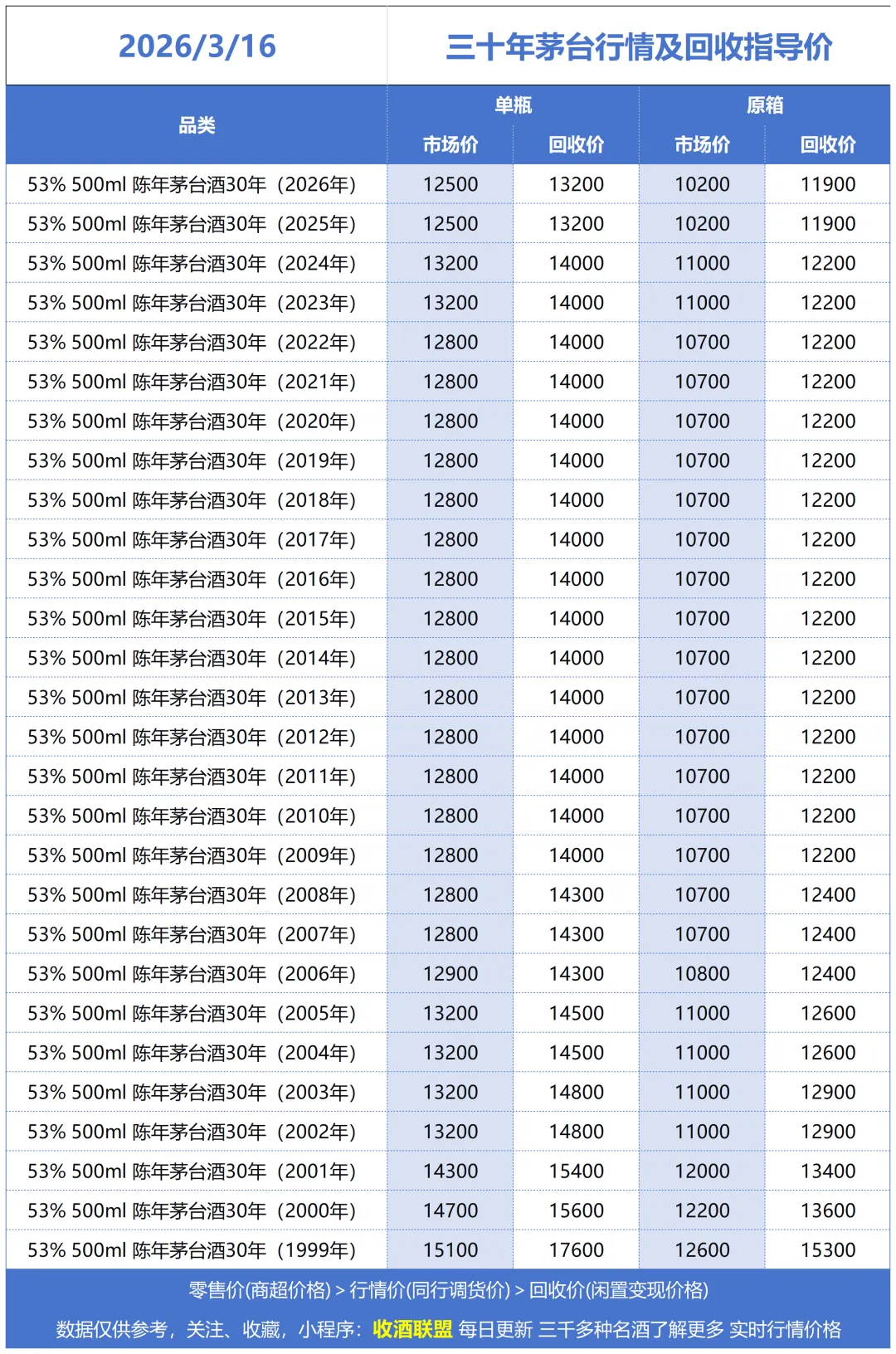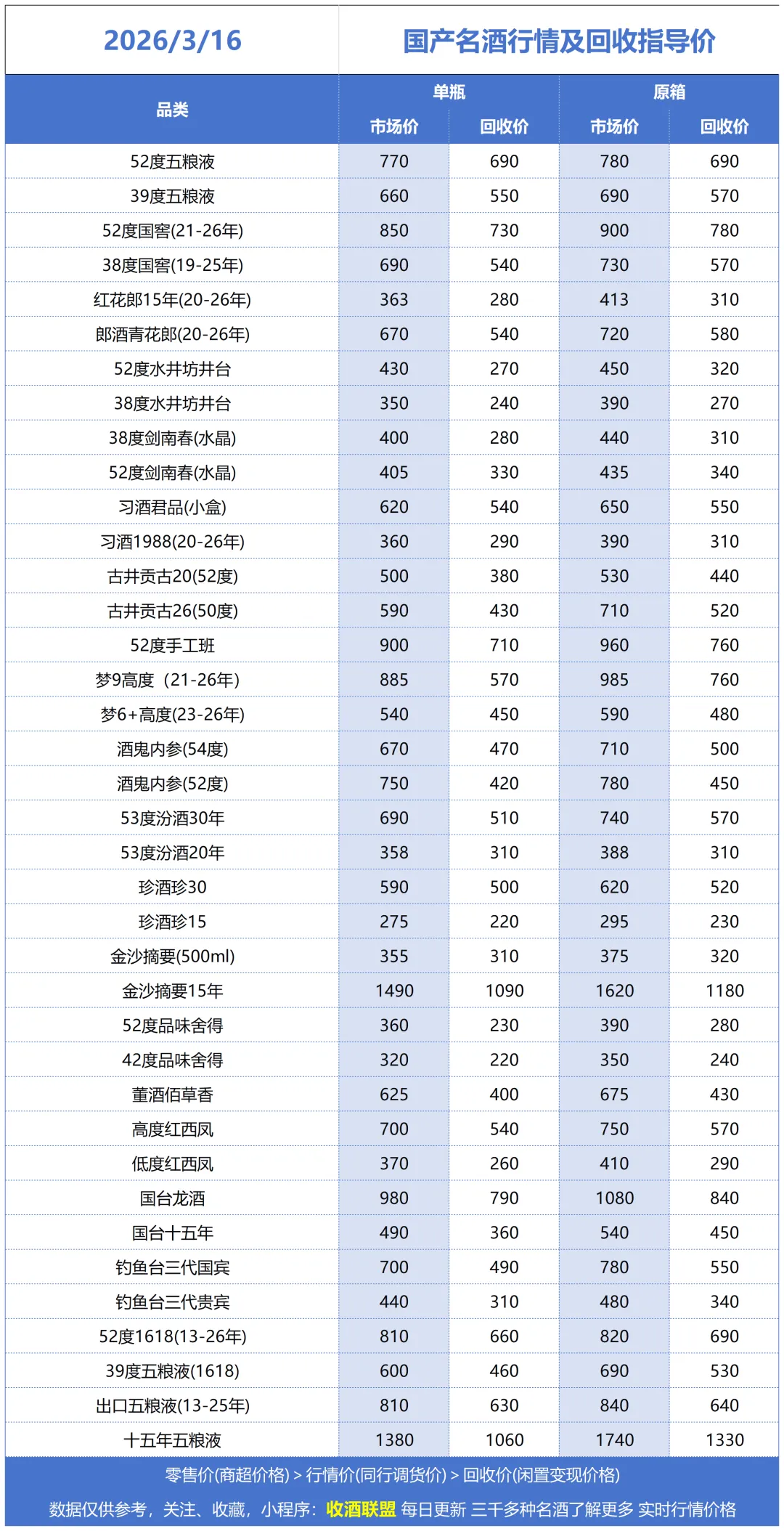 这是酒商之间互相调货流转的基础价格。它被视为市场的“风向标”和定价基石,不包含终端销售所需的额外成本。市场价和回收价均围绕行情价上下波动。