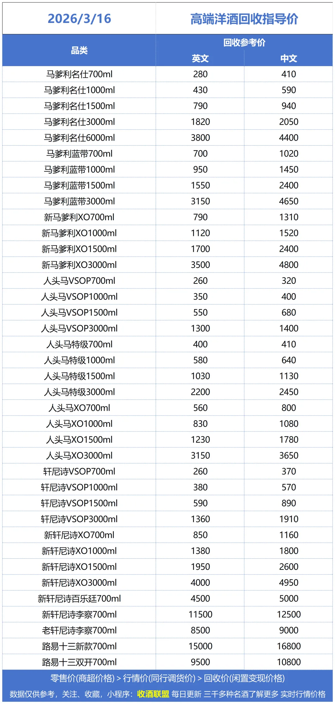【实时掌握每日销售回收行情报价】