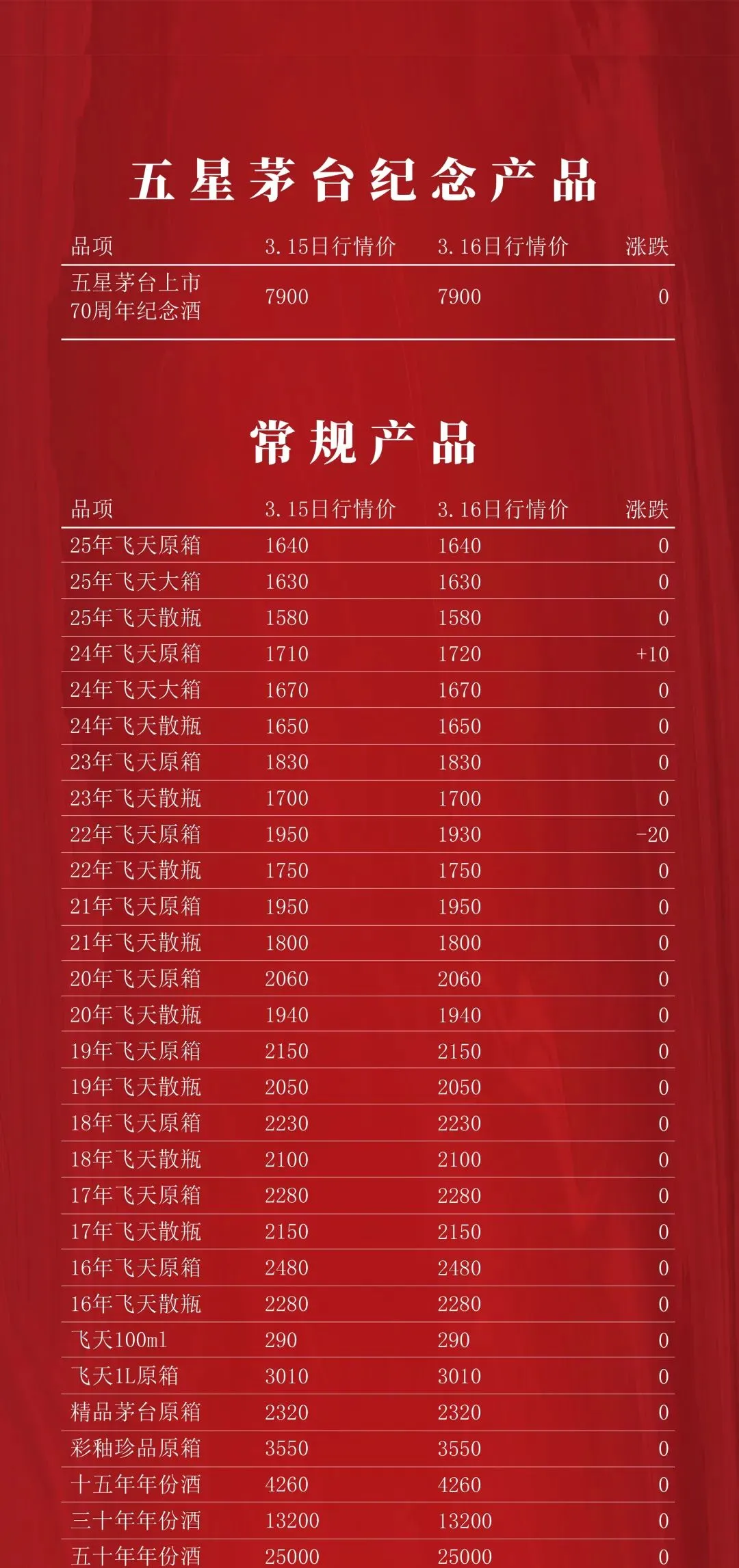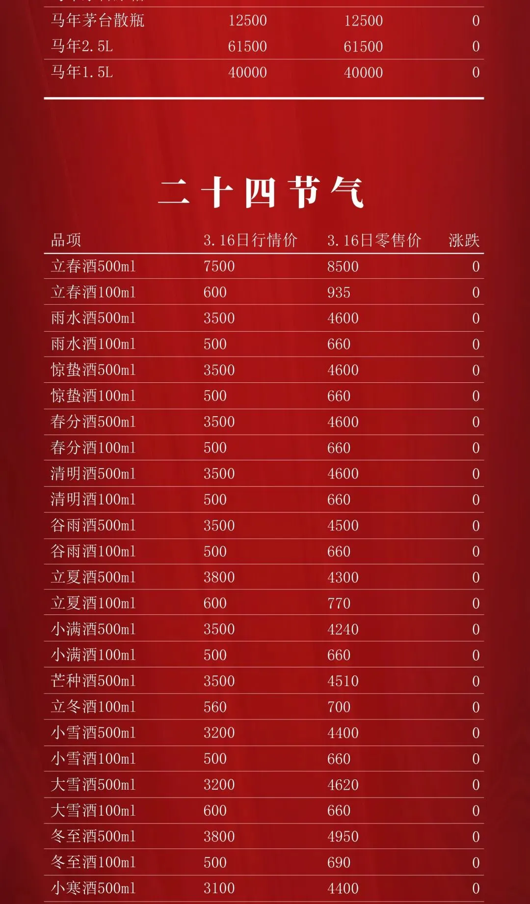 名酒行情(3月16日)