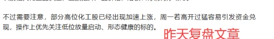 1. 化工方向:今日板块前排标的,正如昨日预判,借助周末消息催化实现了行情兑现。