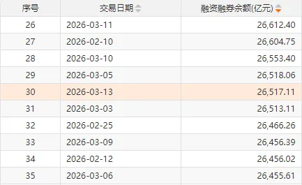 融资余额为26332.61亿元,减少126.85亿元。