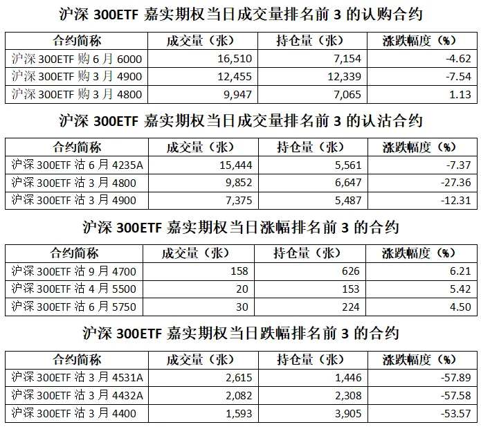 沪深300ETF嘉实期权总持仓量286,065张,增加5.96%,其中认购期权持仓量151,256张,认沽期权持仓量134,809张,认沽认购持仓比率为0.89(上一交易日认沽认购持仓比率为0.88)。