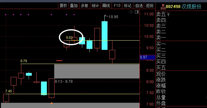 上周四(3月5日)的短线教学标的汉缆股份在上周5上午,盘中做了锁定利润的动作