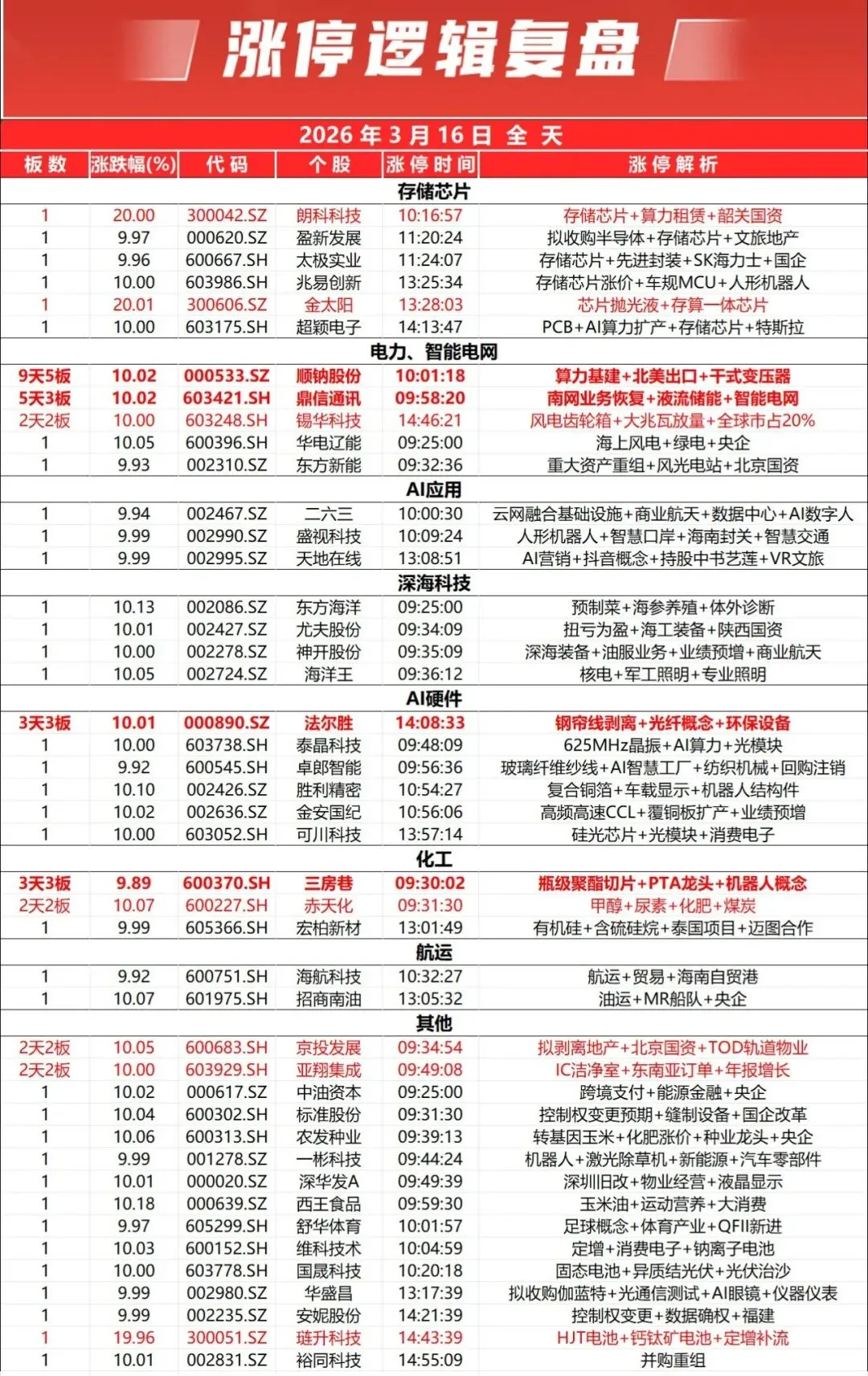 盘面上,存储芯片板块持续走强,佰维存储、兆易创新、华虹公司等多股涨停或涨超10%;港口航运概念午后回暖,招商南油、海航科技涨停;PCB概念震荡走强,超颖电子、金安国纪、金太阳等多股封板;农业种业、白酒等“老登股”大涨,农发种业涨停,皇台酒业涨超5%;AI应用股集体回暖,天地在线、二六三涨停;深海科技概念走强,东方海洋、海洋王封板。此外,房地产、跨境支付、消费电子、多元金融等方向有所表现。