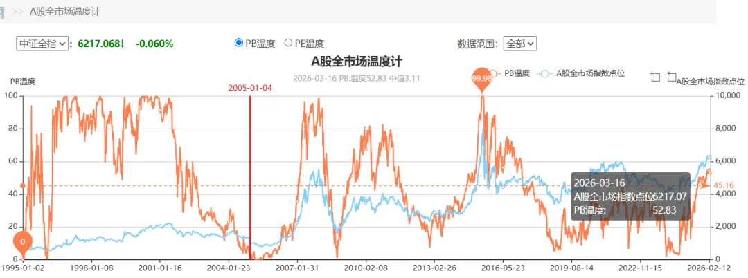 根据集思录A股温度计,目前市场温度52.83℃,处于适中位置。