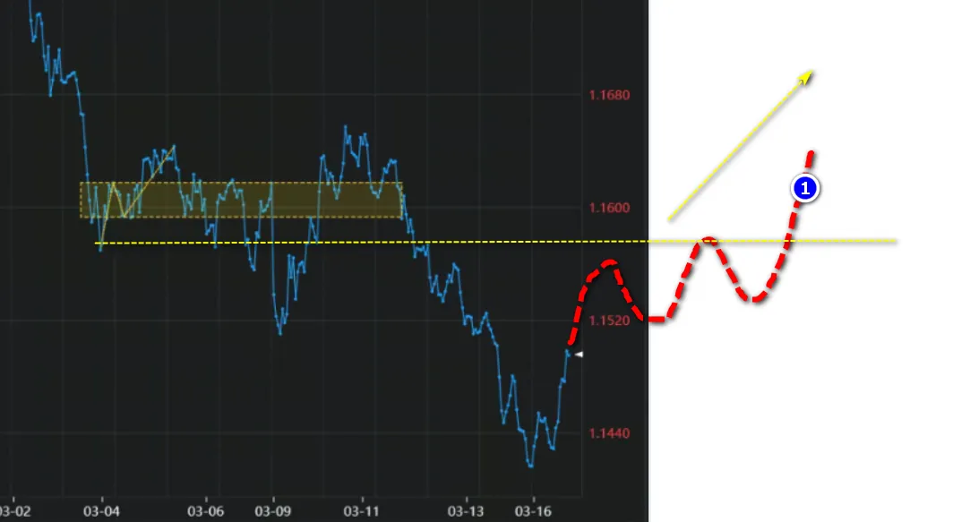 如果能在 1.1440-1.1500 区域构筑底部平台,并突破 1.1600,则可考虑做多