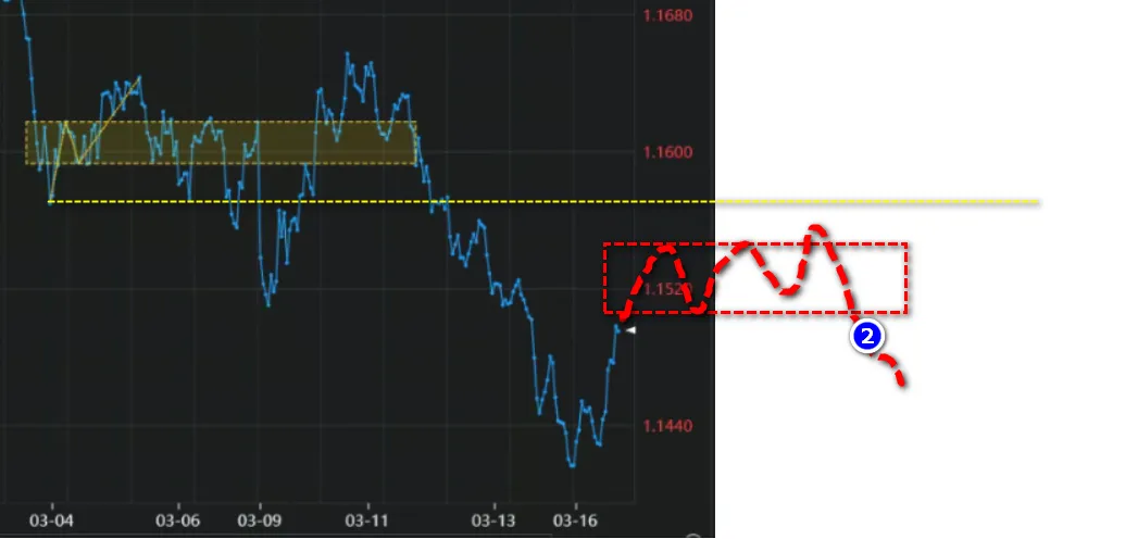 如果反弹至 1.1580-1.1600 区域受阻回落,则继续做空
