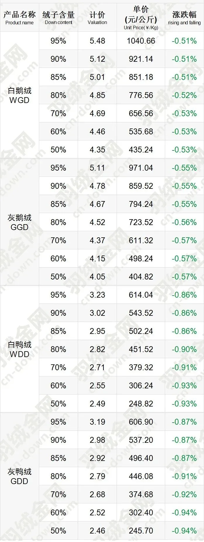 《挥七轩》2026年3月17日羽绒价格行情