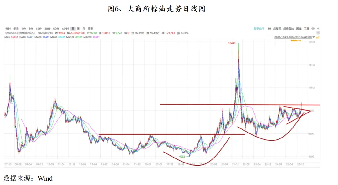 因此,在政策托底、供需趋紧及技术形态共振下,棕榈油价格易涨难跌,建议投资者把握回调布局机会,中期维持震荡偏多思路不变。