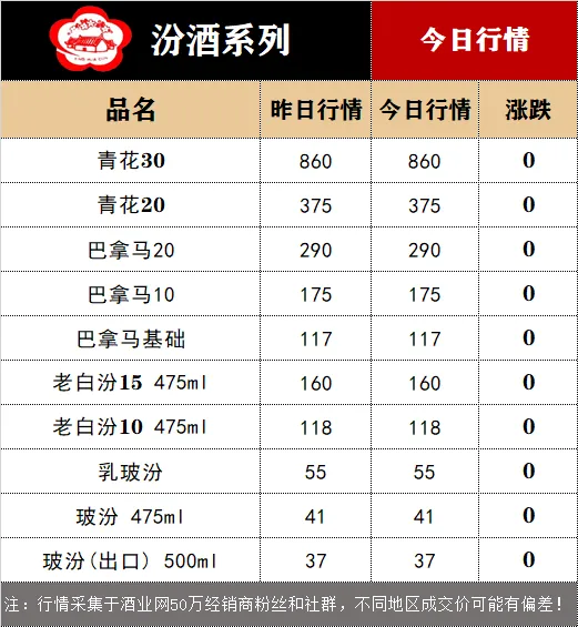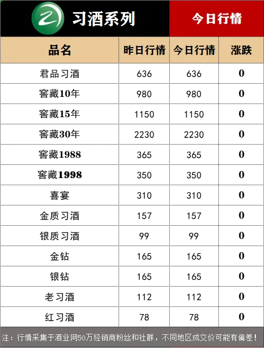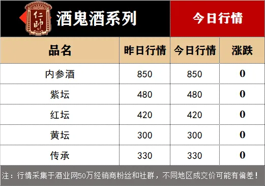 今日(3月17日),从酒业网发布的白酒价格行情监测数据显示,今日茅台酒行情价: