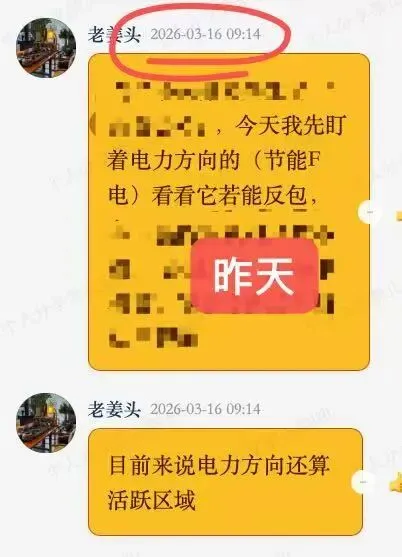 比如我们昨天茶坊内记录有预期反包的绿电概念的(节能F电),昨天我因手中有暂时被套的低吸类型,所以昨天没敢低吸(节能F电),今天就上位了,但持续性这种大势所趋下有待考量。