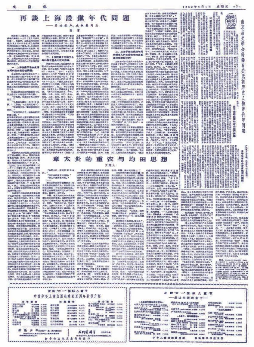 1962年6月1日《文汇报》刊载《再谈上海设镇年代问题》