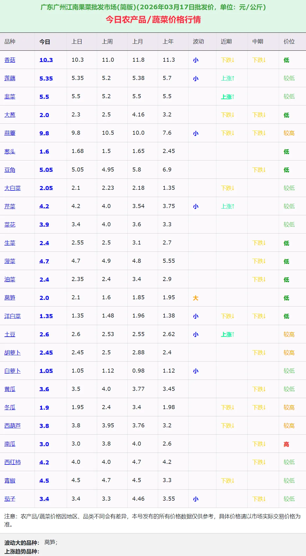 数据来源:广州江南果菜批发市场2026年3月17日行情数据,结合农业农村部及各地批发市场监测信息综合分析。