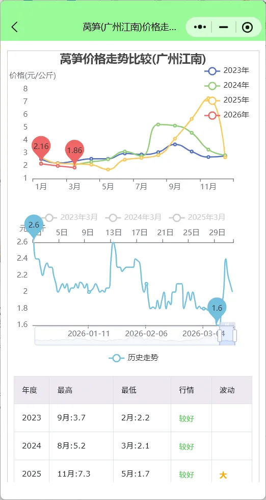 后市预测: 当前价格已接近成本线,继续大跌空间有限。预计3月底价格将在1.8-2.0元/公斤区间震荡筑底,4月后随着新货品质提升和需求回暖,价格有望温和反弹。