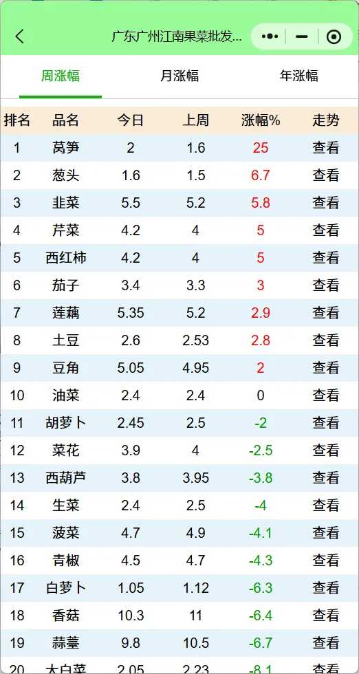 现状: 今日2.00元/公斤,周环比暴涨25%,月环比涨8.11%,是本周涨幅冠军。