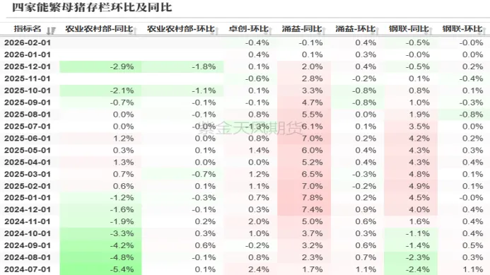 从去年5月起,农业农村部就提出控体重、去产能,因去产能效果不佳,政府继续积极约谈以及呼吁,但仍然效果不佳。从能繁母猪数据来看,2025年年底能繁母猪数据仅比2025年6月能繁母猪存栏下降2%,但若加上持续优化的生产性能,实际落到生猪产能方面,或并未有环比下降趋势,从近期商品猪存栏情况下来看,反而是小幅增加的趋势。从养殖端利润的角度看,自去年9月以来,生猪行业已经进入亏损阶段,春节虽有短暂回暖,但幅度有限。在政府约谈以及倡导去产能,加上长时间亏损,并未造成实质性改善,其实核心问题还是集团企业以及上市企业去产能意愿较差。