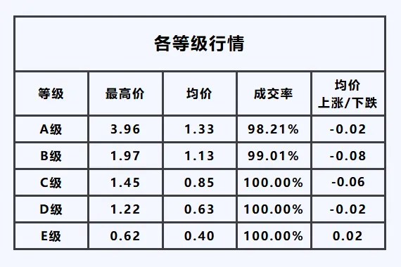 A级——最高价3.96元/枝,均价较昨日,下跌0.02元/枝;