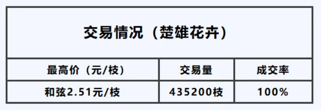 17日,楚雄花拍中心全渠道交易总量约为549520枝,今日交易量较前一交易日减少,总体购买力基本持平。成交率小幅下滑,交易情况如下: