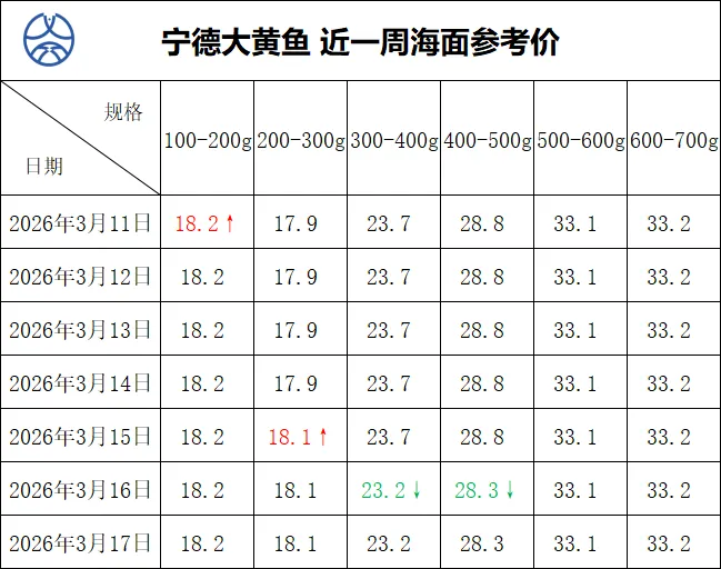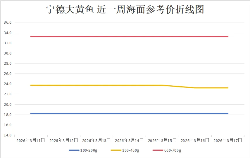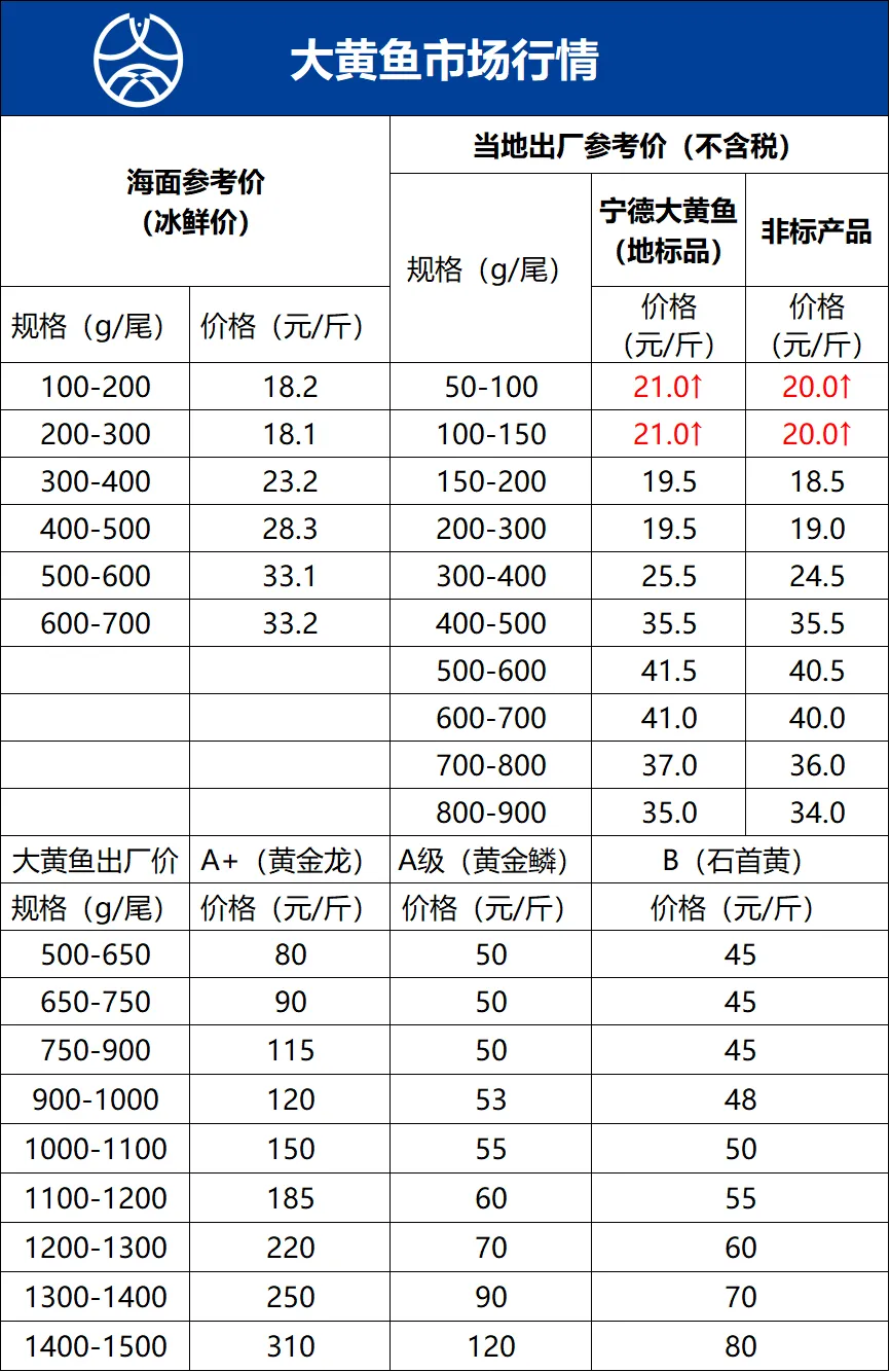 宁德地区大黄鱼海面收购价(冰鲜价)对比昨日保持不变,而