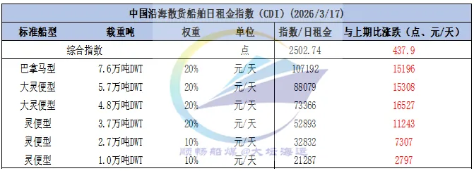 17日,中国沿海煤炭运价综合指数上涨79.58点至891.48点,各航线运价涨幅区间在2.4-4.4元/吨。
