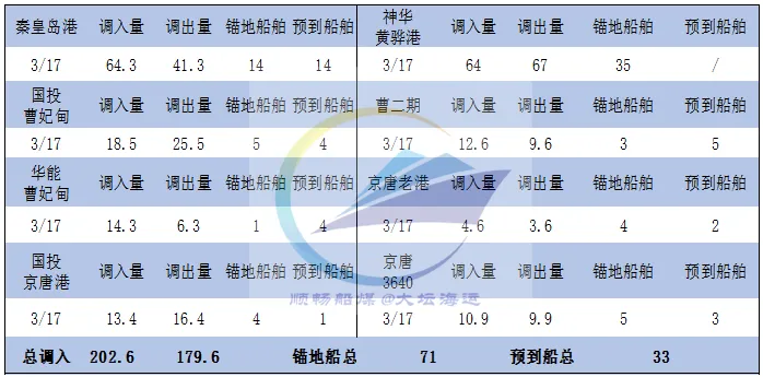 17日,环渤海港口锚地船舶数量71条,预到船舶33条(神华黄骅港除外)。