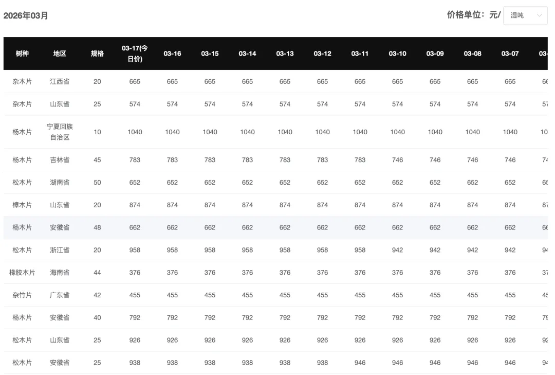 今日木片价格偏强运行,出货量具有一定波动。其中采木网平台合作报价商——山东德州地区客户杨木片(净片,含水率50%左右)报价780元/吨;贵州黔西南地区客户杂木片(净片,含水率50%左右)报价400元/吨;河南南阳地区客户松木片(净片,含水率45%左右)报价610元/吨。目前正处于传统需求“旺季“阶段。