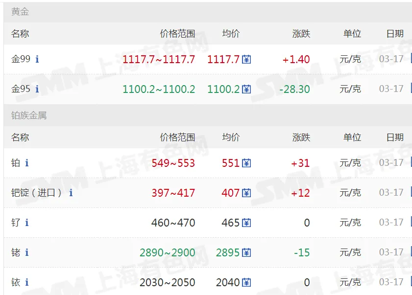 >20260317金银铜铝价格行情