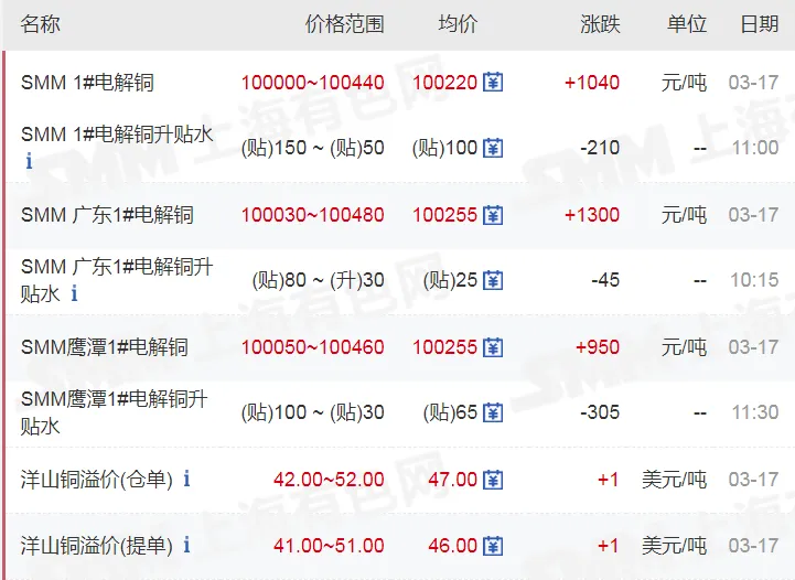 重回十万!铜价行情今日铜价大涨,铝价上涨【2026.03.17】