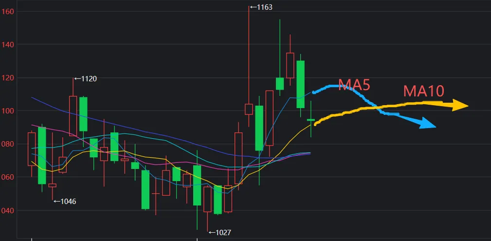 另外再说下止损问题,个人建议是MA5日均线下穿MA10日均线后,多单可以离场观望,不过不建议反手做空。