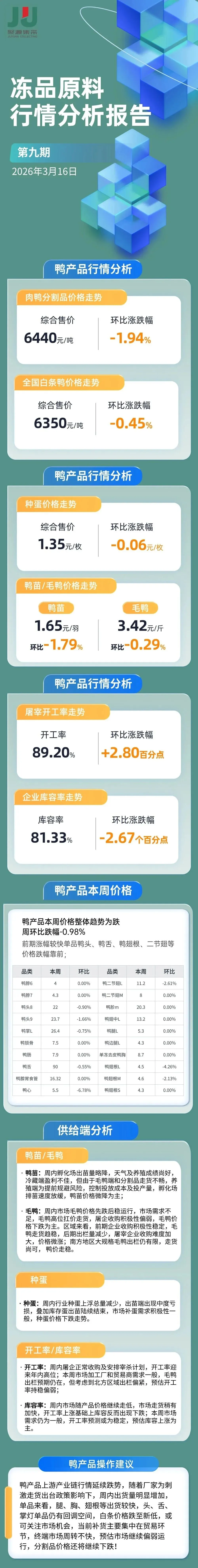 >【市场】鸭分割冻品原料行情分析:还没到底,仍将继续下跌?