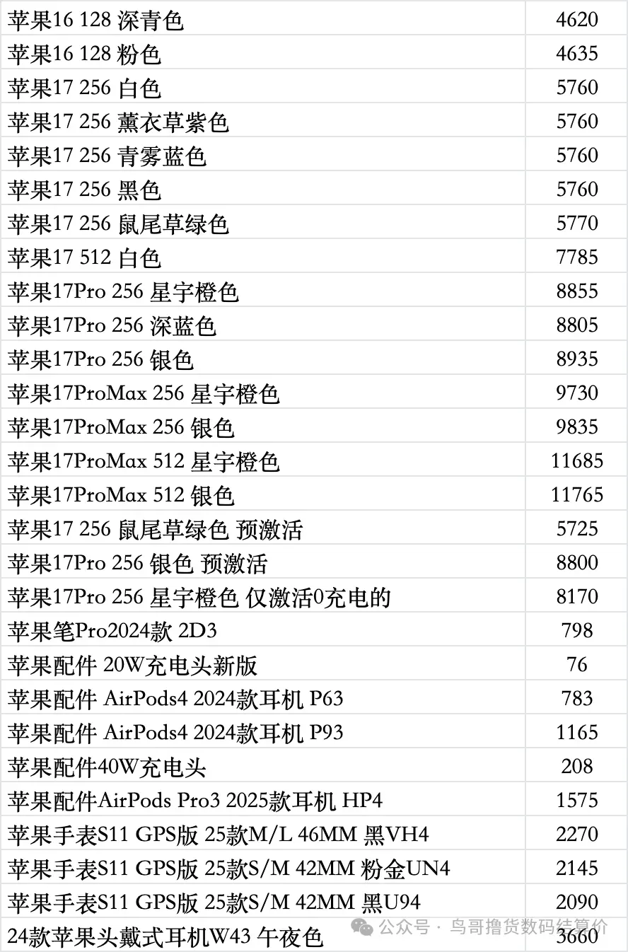 | 鸟哥收货iphone/ipad/手表系列结算价(前一天的结算价) |