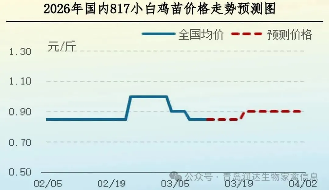 本周国内817小白鸡鸡苗周度均价0.86元/羽,与上周均价相比,下跌0.11元/羽,跌幅11.34%。