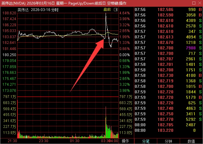 昨天不是英伟达的GTC大会吗,开会公布新技术的时候,整个英伟达的分时走势出现了“插针”的走法。