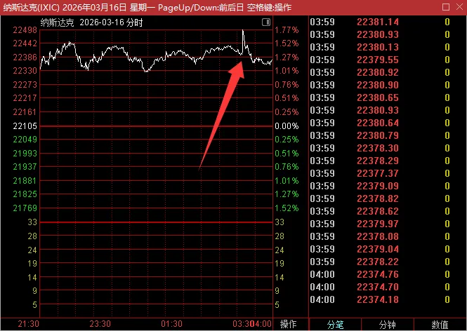 更夸张的是,因为英伟达是4.4万亿市值的超大盘股,它这种“插针”走势,直接导致了整个纳斯达克指数都出现了波动。
