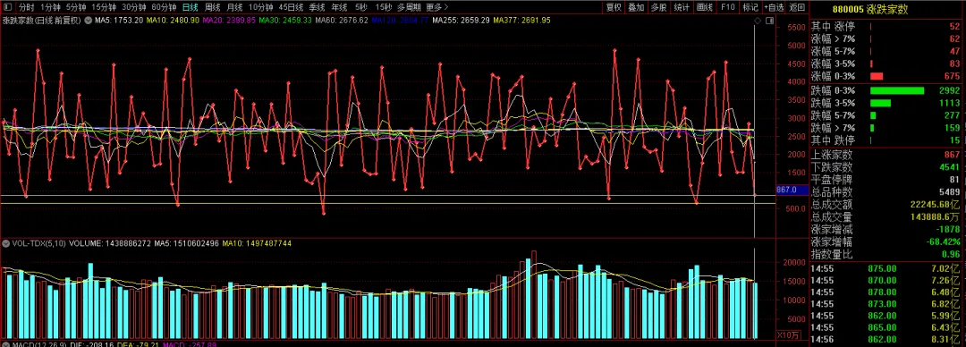 今天还缩量了2000亿,只有2.2万亿。