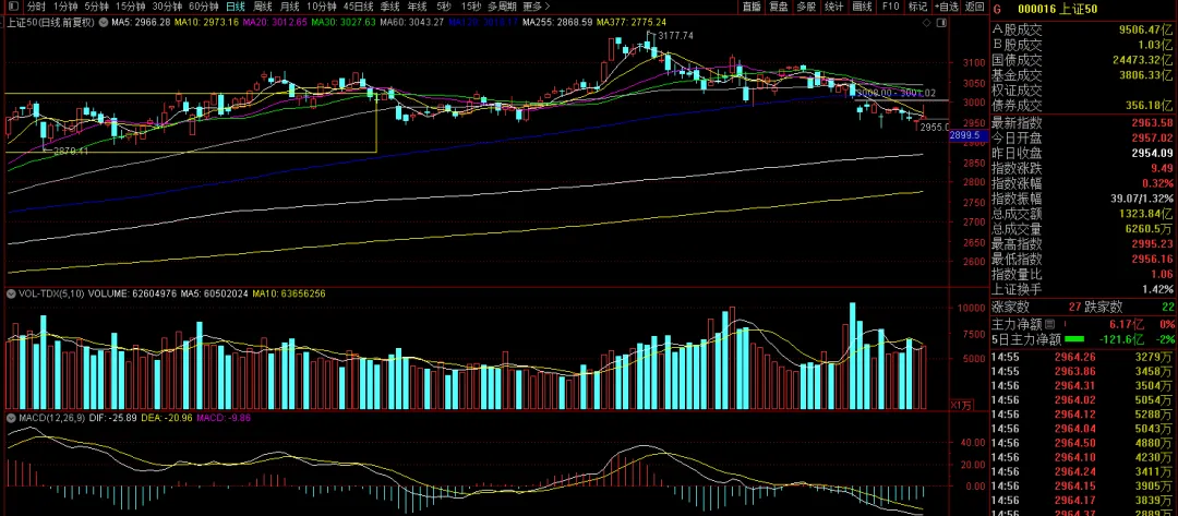 那同样,能拿来观察指数止跌迹象的还有上证50。