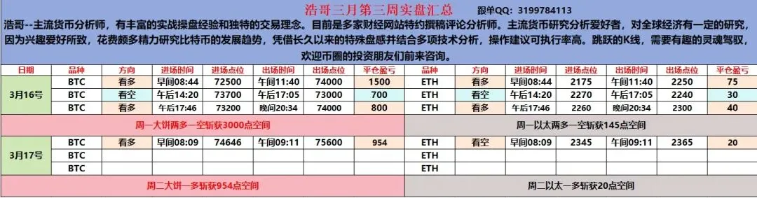 这种“一拉一回踩”的节奏,是典型的多头控盘信号。它并非简单的单边上涨,而是通过小幅度的快速洗盘,有效清除了不坚定的短线浮筹,为后续的上攻减轻了压力。从73200企稳后,多头随即展开反攻,价格呈现出阶梯式上行的健康结构,每一步都走得非常扎实。