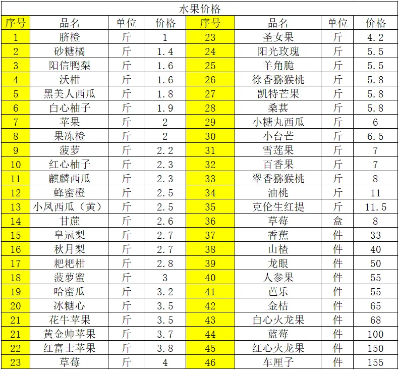 2、水果价格