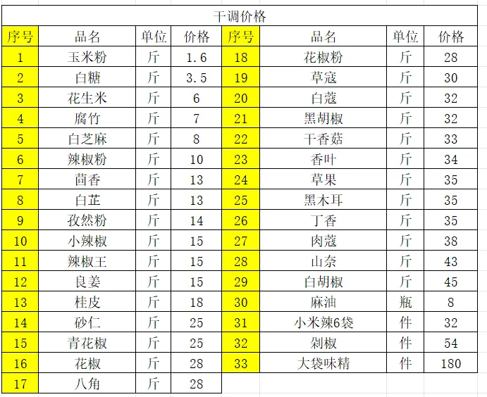 4、干调价格