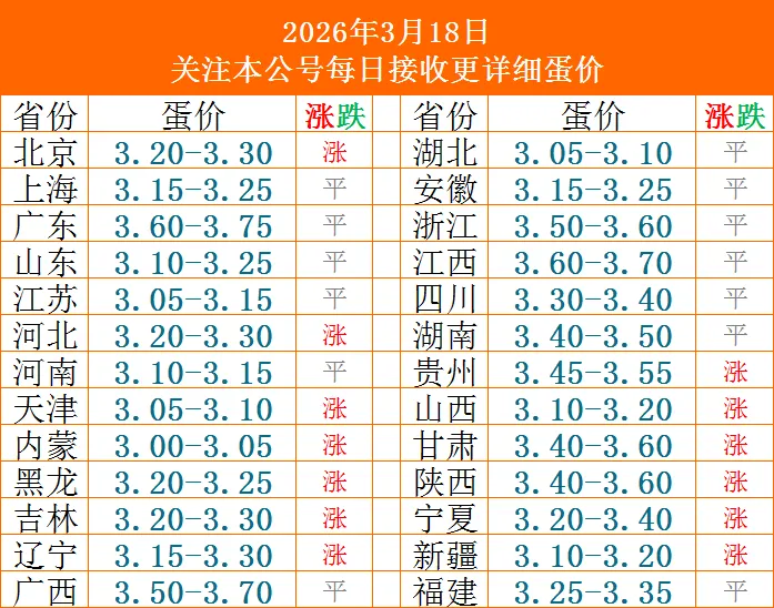 下图为3月18日全国鸡蛋价格表 仅供参考!